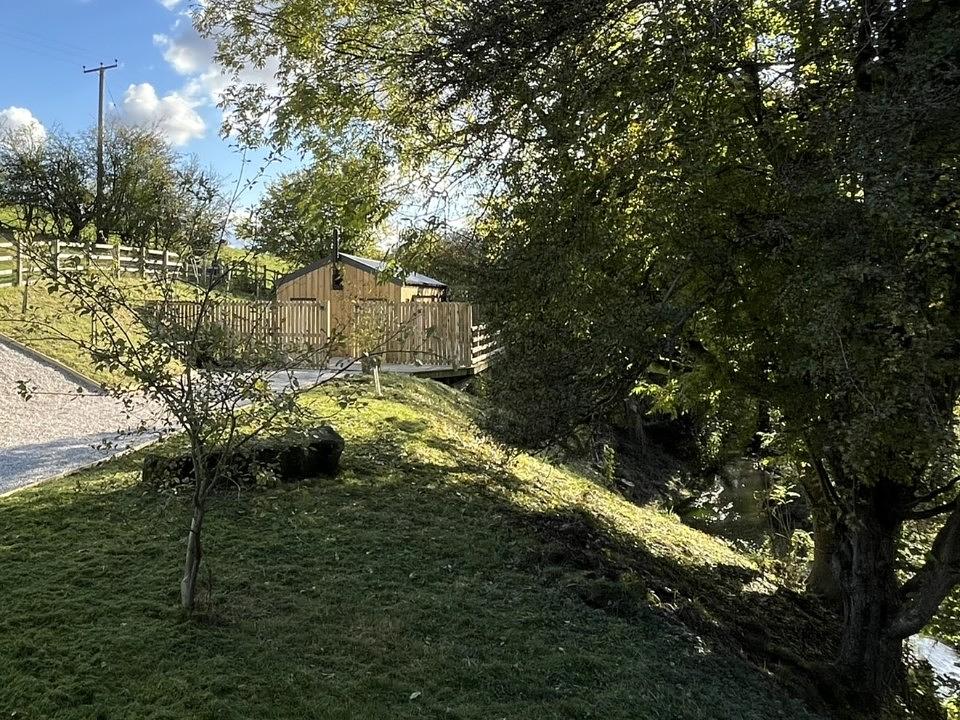 Riverwood boasts a spacious private deck overlooking the tranquil stream, complete with an al fresco dining area, a gas BBQ (available April–October), and a two-person hot tub for relaxing under the open sky. Beyond the deck, guests can wander the surrounding woodland, follow the stream, and enjoy the public footpath that runs past the property.
