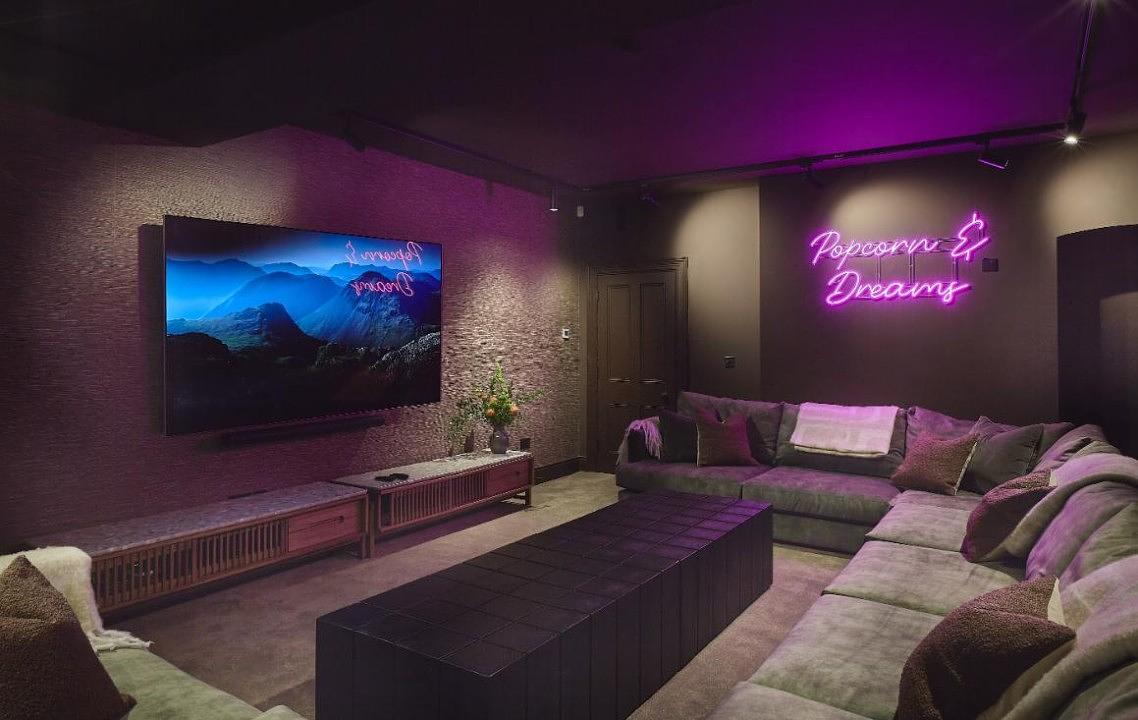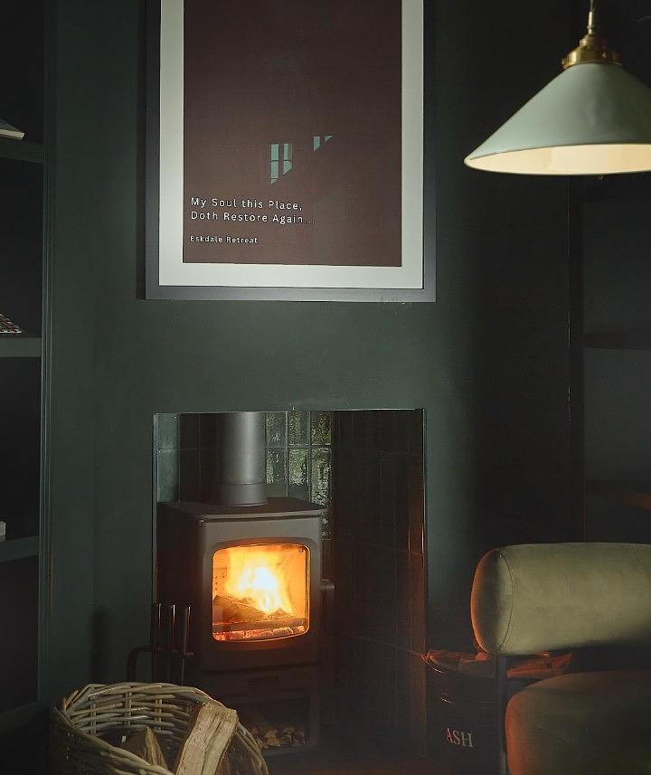 Skyfall boasts expansive, open-plan living areas that seamlessly blend luxury and comfort. The spacious kitchen, dining, and lounge area features a double-sided log burner and large glass bifold doors, offering a direct view of the meadow, River Esk, and surrounding Lakeland fells. Additional spaces like the private cinema room and cosy library snug ensure there's always a place to unwind or enjoy some entertainment.