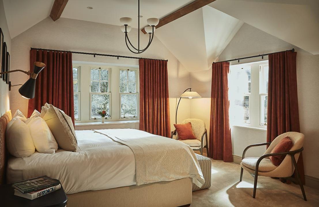 Skyfall is a luxurious property combining traditional Lakeland charm with contemporary Scandinavian-inspired design, located in the unspoiled western Lake District. The spacious open-plan kitchen, dining, and lounge area features a double-sided log burner, large glass bifold doors, and stunning views of the River Esk and the surrounding fells. Guests can relax in the cosy library snug, enjoy the cinema room, or unwind in the hot tub's.