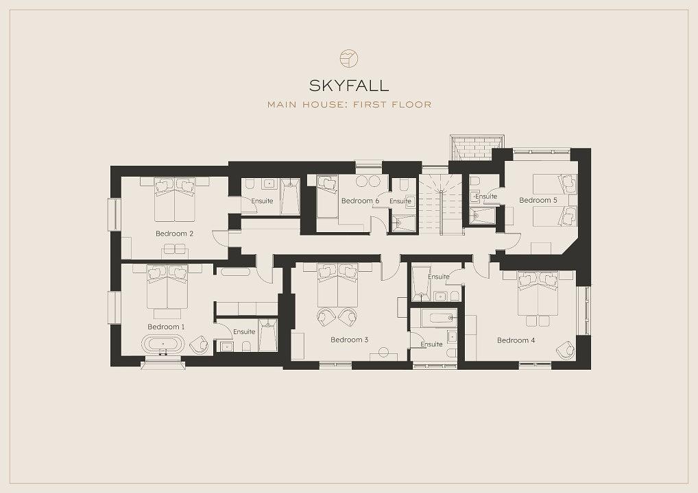 The home accommodates up to 16 guests across eight spacious ensuite bedrooms, with luxurious super king-size beds (seven of which can be split into two singles). Unique touches include two bathrooms with free-standing baths—one in copper and one in black—as well as a built-in bunk bed room that’s fun for both kids and adults. The property also features an Alpine-style boot room with heated boot warmers, secure bike storage for up to 16 bikes, and bike washing facilities. Skyfall offers the perfect combination of modern comforts, outdoor adventure, and tranquillity, making it an ideal destination for family and friends seeking a memorable luxury escape.