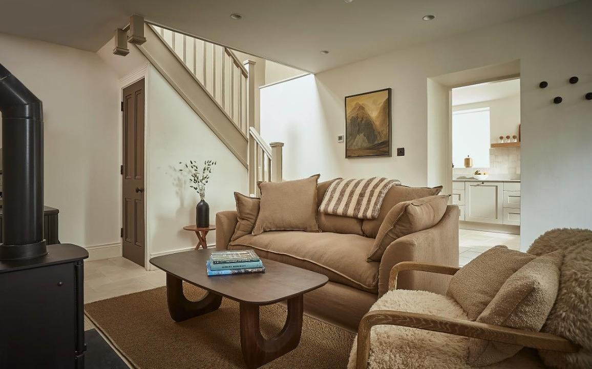 Skyfall is positioned to offer some of the most breath taking views in the Lake District. From the large glass bifold doors, guests can enjoy panoramic vistas of the meadow, the River Esk, and the towering fells that define the landscape. Whether inside or out, the views provide a stunning backdrop to any part of the home.