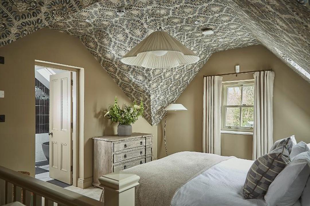 The home features eight luxurious ensuite bedrooms, accommodating up to 16 guests. Each bedroom is designed with comfort in mind, offering super king-size beds (seven of which can be split into two singles) and two rooms with indulgent free-standing baths. The unique built-in bunk bed room provides a playful touch, perfect for families. The adjacent Coach House offers two more deluxe bedrooms with super king-size beds.