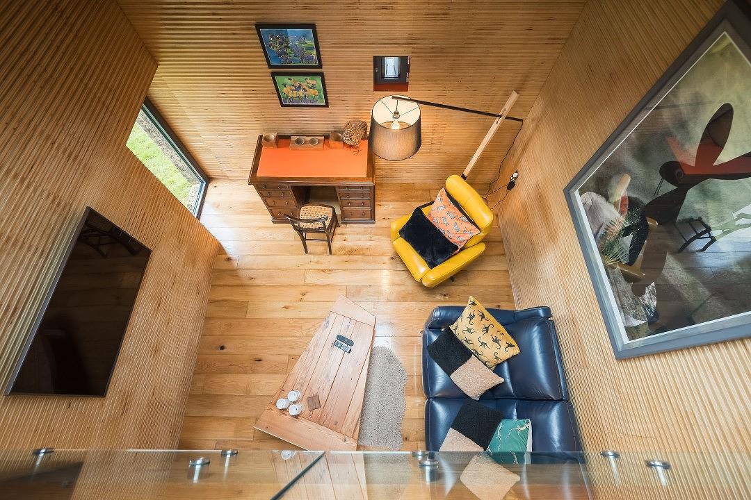 The main living space comprises an open plan kitchen and dining room with a cosy lounge space to curl up with a book or enjoy the views from the floor to ceiling glass windows and doors.