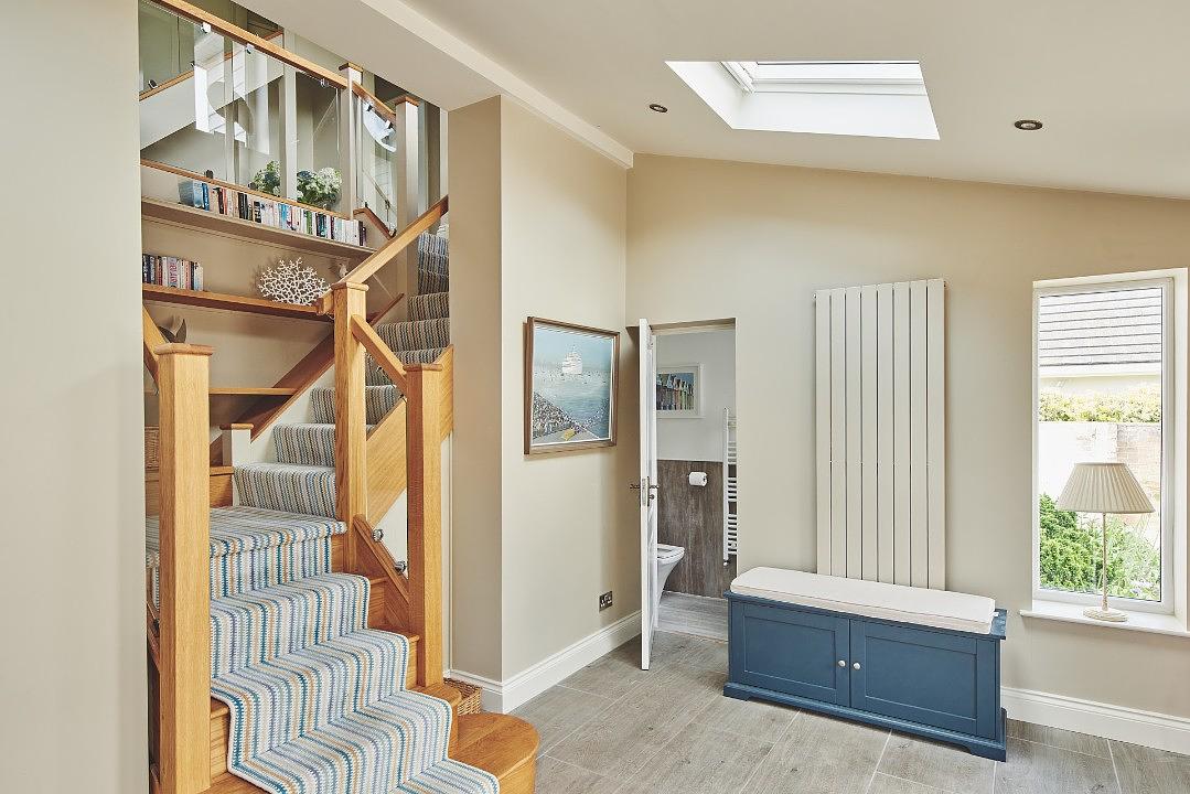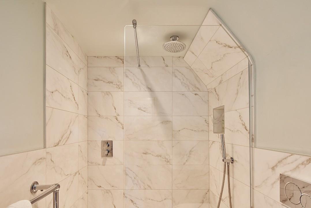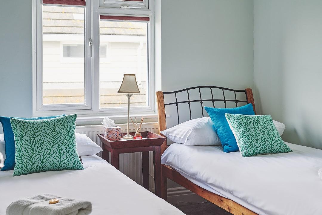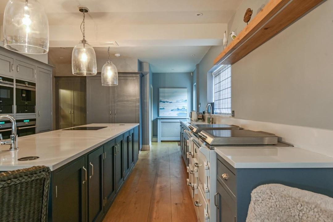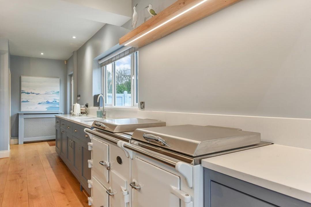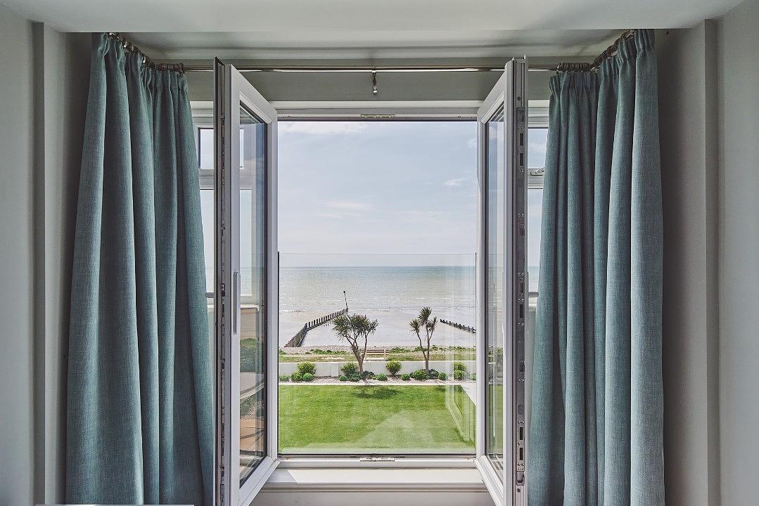 Ocean Edge features five beautifully appointed bedrooms, sleeping up to ten guests in total comfort. Three of the rooms have direct access to the huge sea-view balcony, while the Crow’s Nest suite on the top floor offers spectacular elevated views and a private ensuite bathroom. The interiors are designed with a calming coastal palette, ensuring restful nights and peaceful mornings. Across the home you'll find three modern bathrooms, all finished to a high standard for added luxury and convenience.