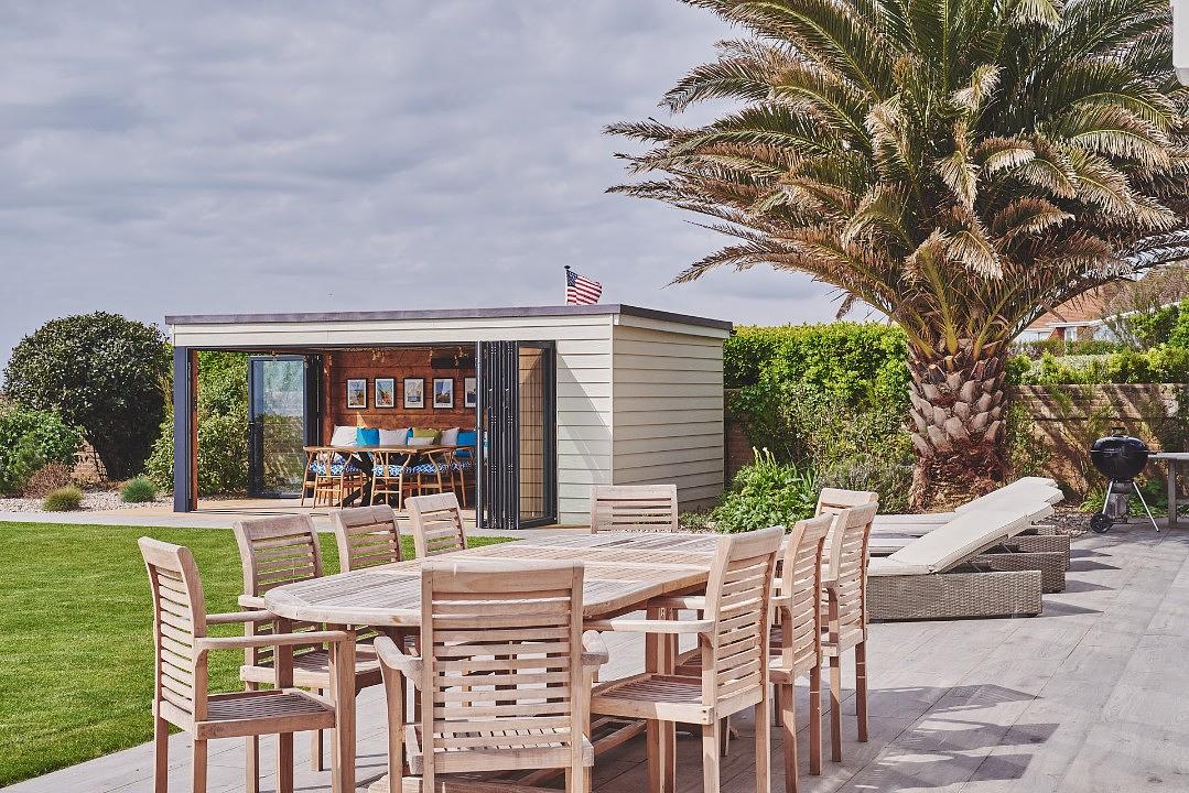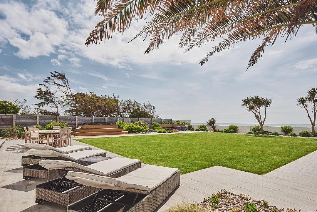Step outside into your private landscaped garden, a fully enclosed space designed for both fun and relaxation. Soak up the sun on loungers, gather around the fire pit in the evening, or rinse sandy feet under the outdoor hot shower after a beach walk. At the heart of the garden is the Skye Bar, a covered outdoor bar and lounge area featuring bar seating, a TV, and panoramic sea views - ideal for cocktails at sunset, watching the match, or enjoying alfresco meals year-round. With feature lighting and direct access to the beach, this is outdoor living at its finest.