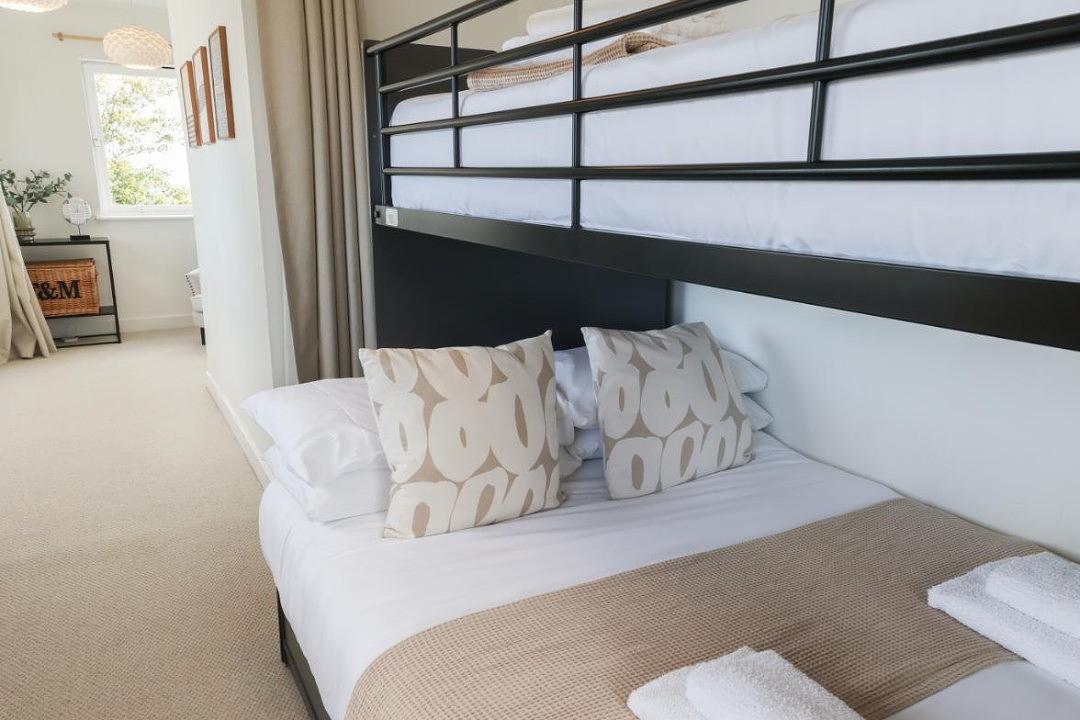 Whilst upstairs, the master super king bedroom’s double velux provide a light and spacious space. The family bathroom provides sweeping views across the Irish Sea from the fully tiled rainforest shower. Across the landing there is reading nook that provides the perfect quiet space for reading or as a holiday office space. The final bedroom provides a triple bunk bed for up to 3 children or 2 adults, and with the 4 windows, is a light and vibrant space.