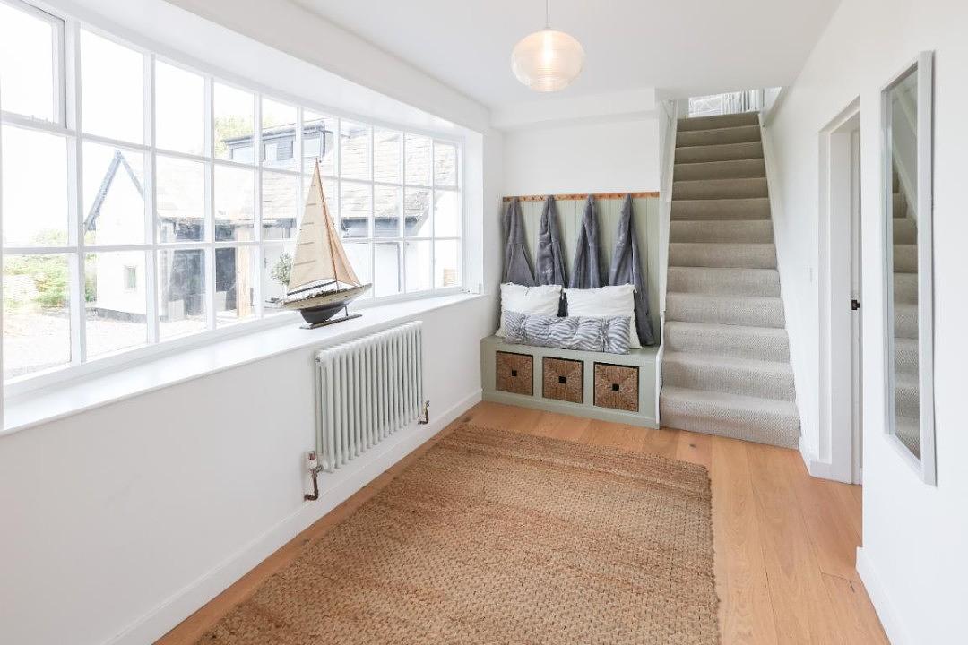You are welcomed by a separate entrance lobby with adorned by an original bay window, that provides the perfect decamping area after a busy day of activities. There is an adjoining external shower, for those messy pups, kids and adults, to wash those sandy feet after a day’s activities.