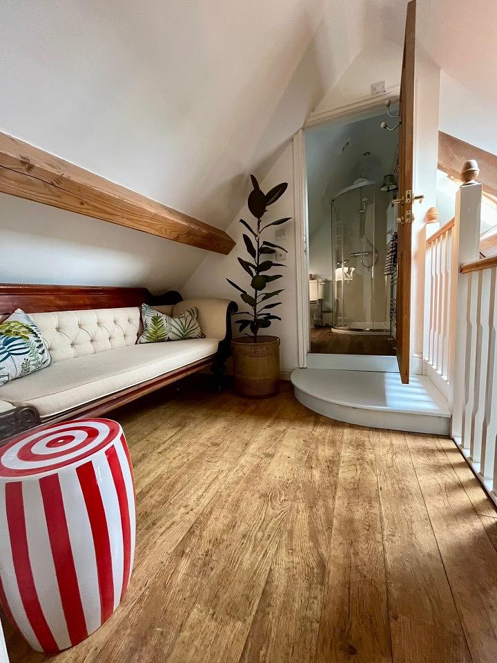 Upstairs, the beamed master bedroom provides a peaceful retreat with a king-size bed, private shower room, and separate toilet, offering privacy and comfort. The property also features a second king-size bedroom furnished with premium linens for a restful night’s sleep. A highlight of the bathrooms is the elegant ground-floor bathroom with a roll-top bath—an inviting spot to soak and relax after a day spent exploring the countryside. With multiple well-appointed bathrooms, The Mews ensures convenience and comfort for all guests.