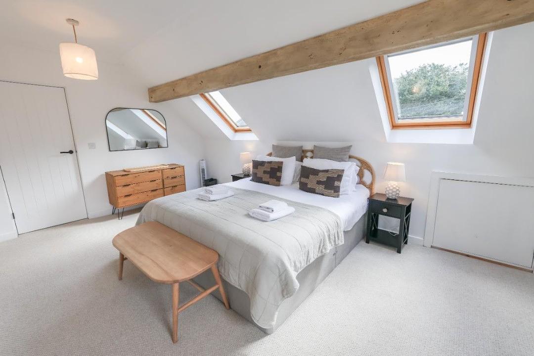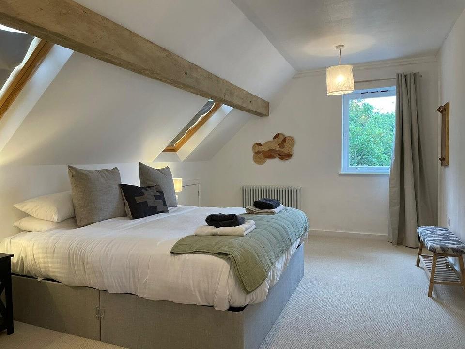 Bedroom 3 – super king size bedroom and en-suite with dormer window views to the bay