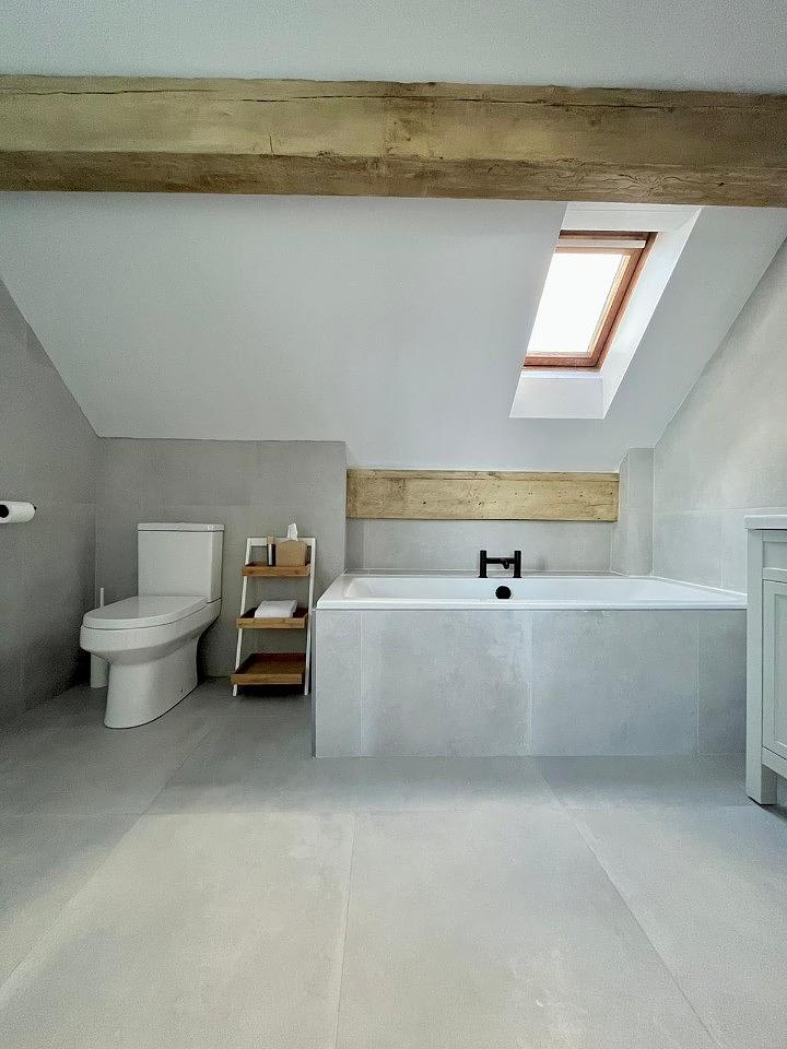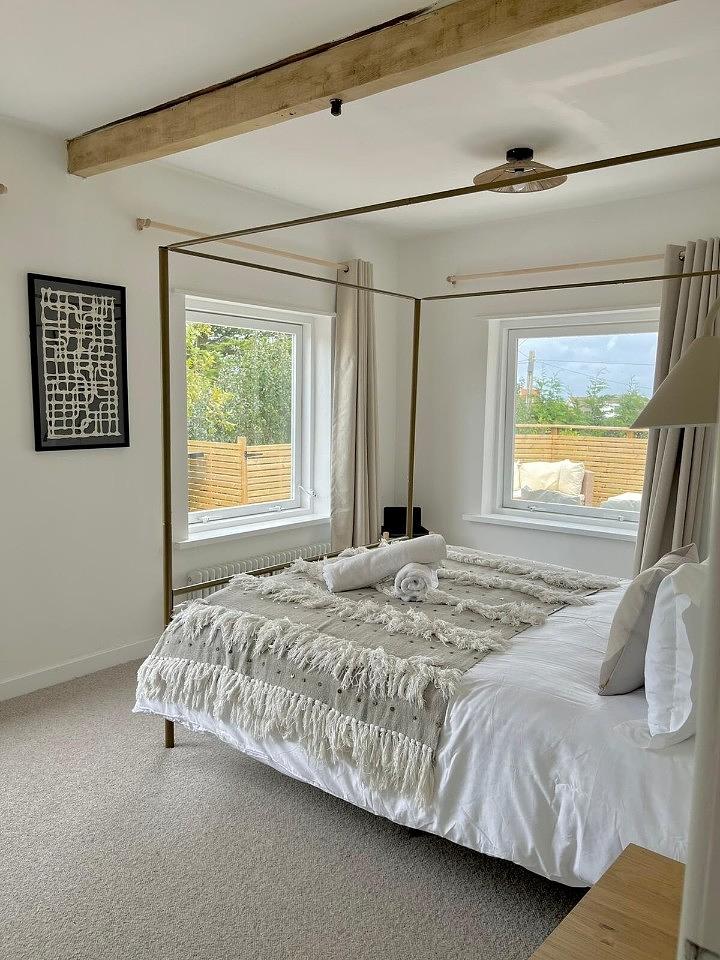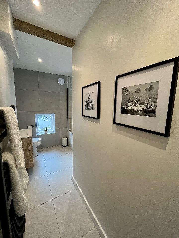 Off the living area, is the third super king bedroom, the fourth double bedroom that Birch Stays can set up for a separate home office space and a large family bathroom suite, with a shower and bath.
