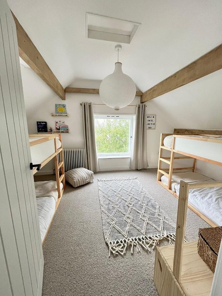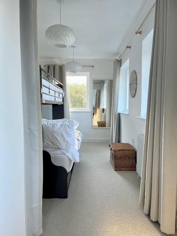 Whilst upstairs, the master super king bedroom’s dormer provides sweeping views across the Irish Sea and includes its own stylish en-suite shower room. Across the landing there is a beautiful, bright 4x bunk room, with hidden kid’s den. For the more mature guests who might not be using the secret den, the bedroom can sleep up to 3 adults.