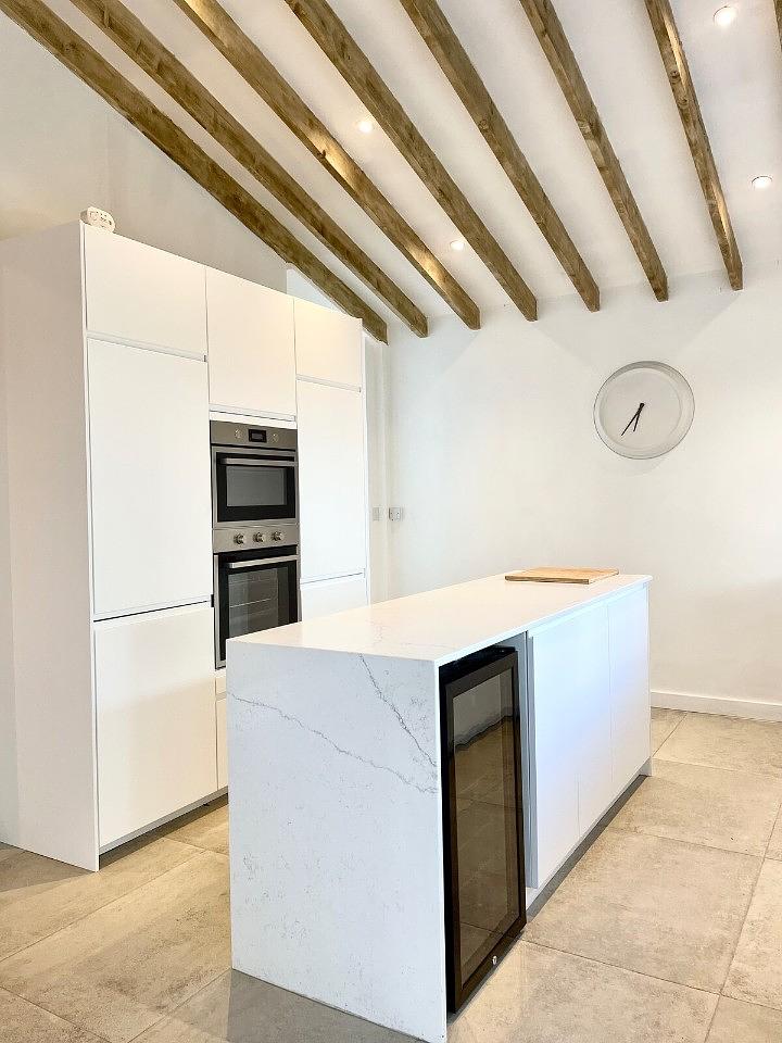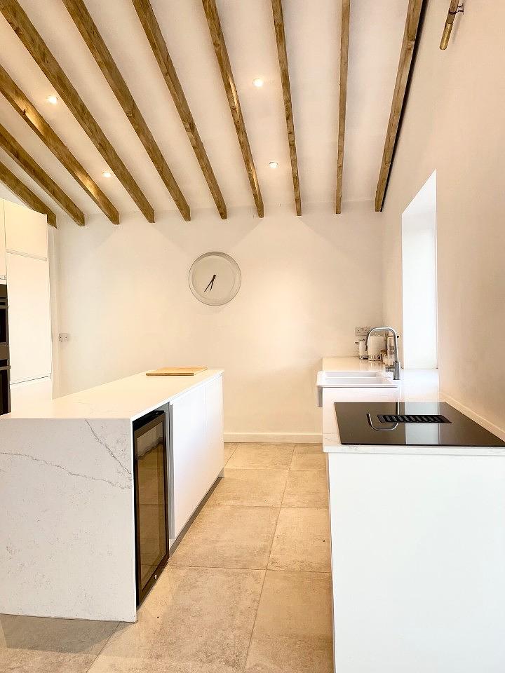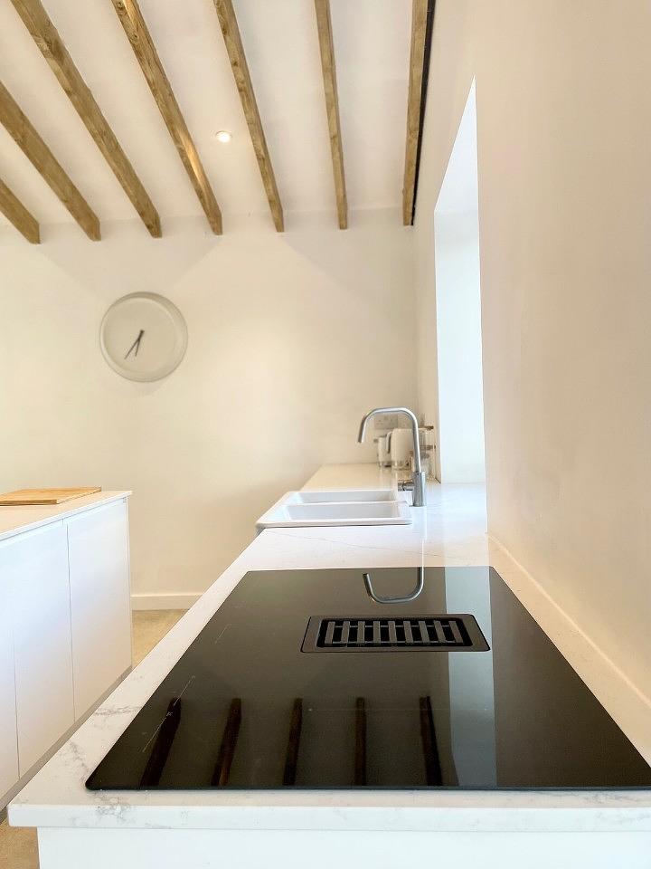 Fully equipped modern kitchen with dishwasher, drinks fridge, induction hob, fridge and freezer