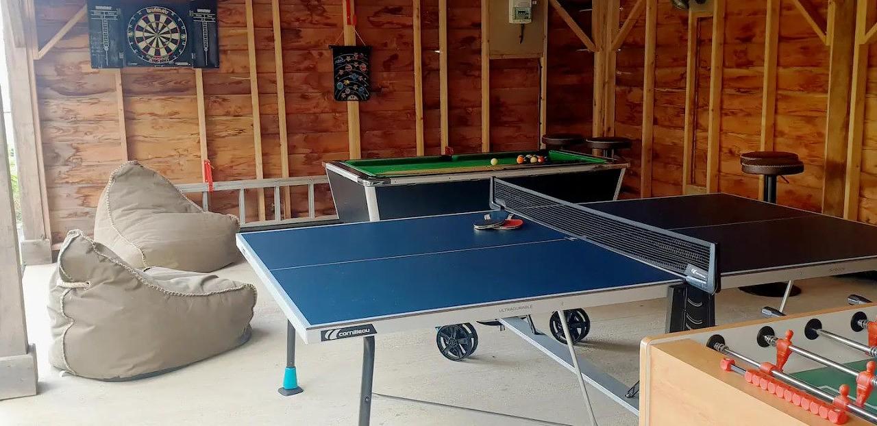 - Games barn with darts, pool table, table tennis and foosball table