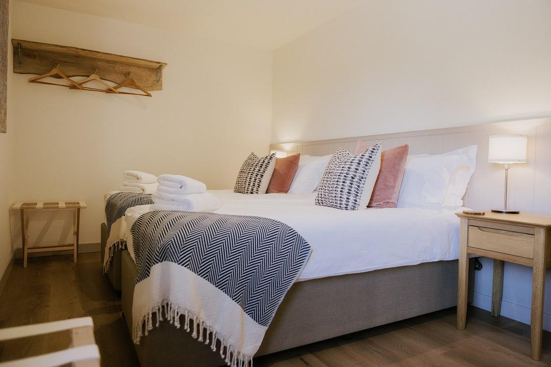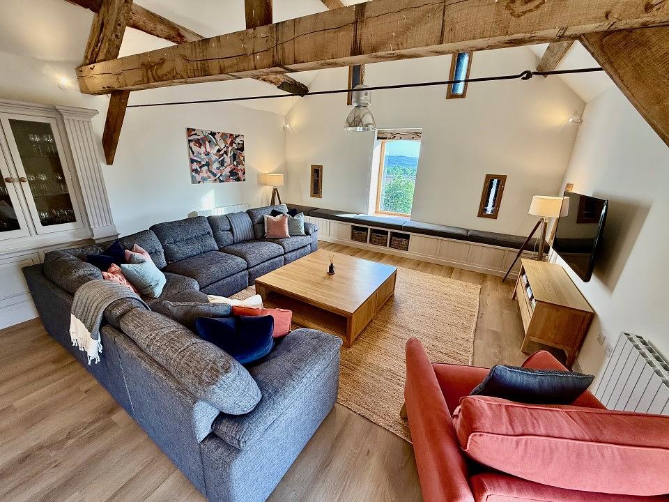 Relax into sumptuous sofas or enjoy the cosy window seating with far-reaching views across The Vale. When it’s movie time, the 52-inch smart TV awaits, and for memorable meals, the handcrafted dining table seats up to 14 guests beside a roaring log fire. Whether it’s lively celebrations or quiet evenings in, this space brings everyone together in comfort and style.
