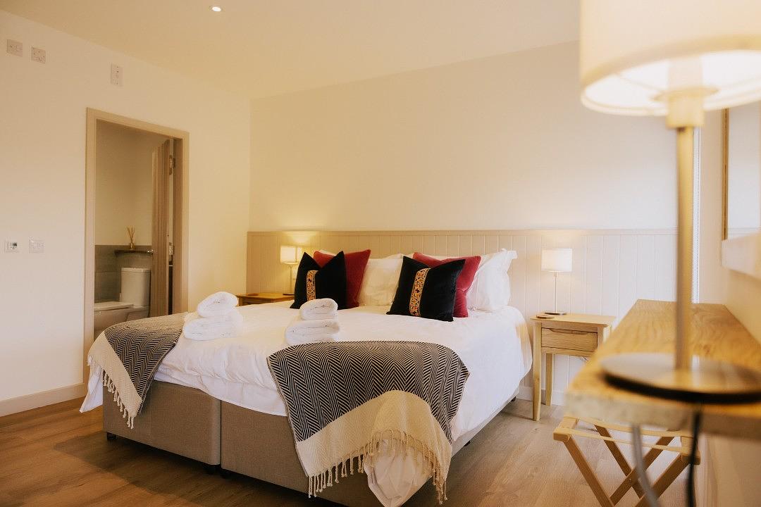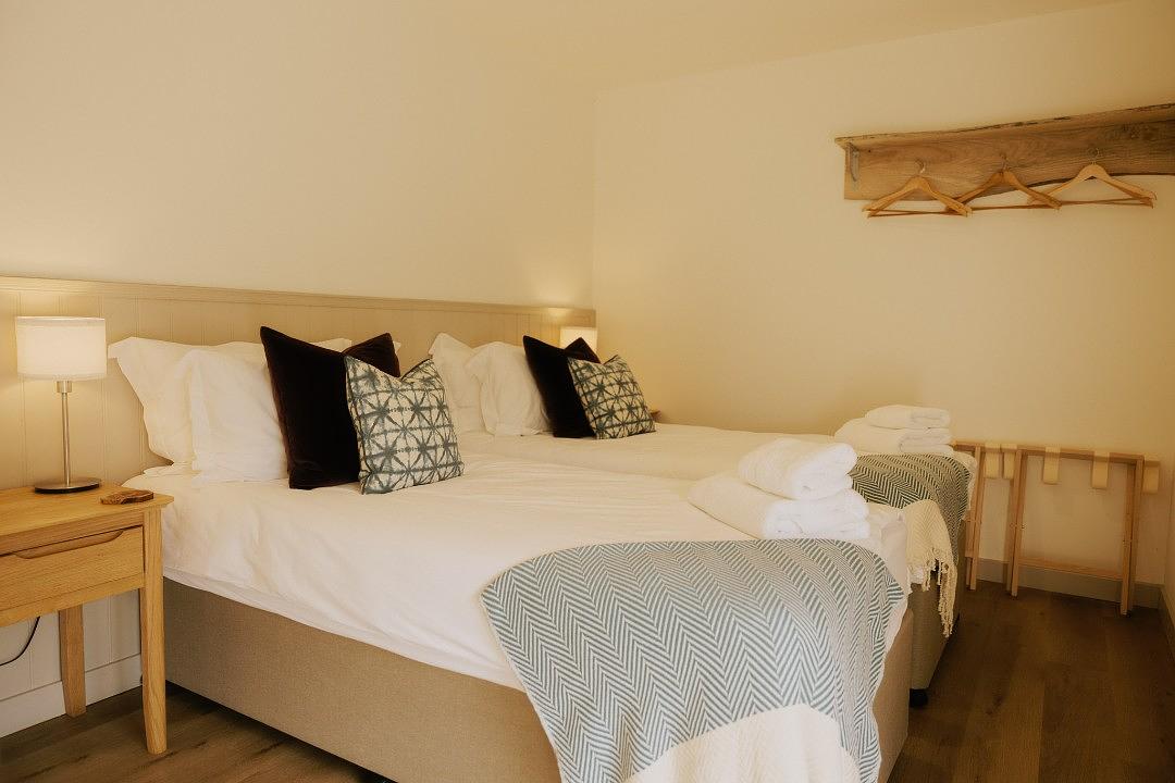 Step into a realm of tranquillity in one of The Vale Barn’s six inviting bedrooms, each designed as a mini haven of peace and privacy. Four are located on the ground floor, each with its own ensuite bathroom, while the two upstairs bedrooms share a spacious, well-appointed bathroom. Beds can be configured as either sumptuous super kings or twin singles to suit your needs. Every room comes with thoughtful touches, including Temple Spa toiletries, a hairdryer, heat-protector mat for styling tools, and an emergency torch, ensuring comfort, convenience, and a truly restful night’s sleep