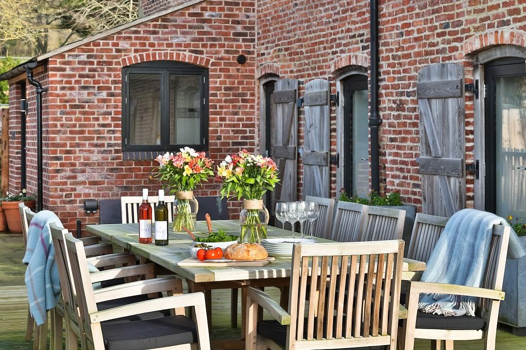 The outdoor space at The Vale Barn is designed for both relaxation and entertaining. With private off-road parking for up to 10 vehicles, a fully equipped outdoor kitchen, and comfortable seating for dining or unwinding, it’s perfect for gatherings of any size. A grassy paddock at the front adds open space, while the living room window seat offers sweeping views across the stunning Vale of Clwyd, ideal for soaking up the scenery at any time of day.