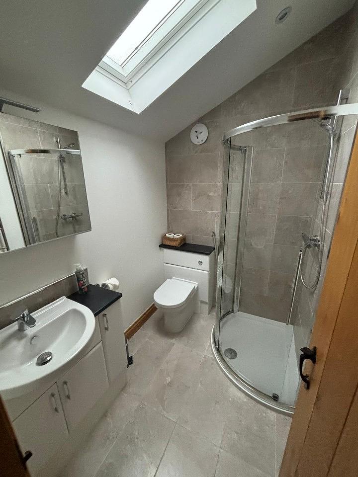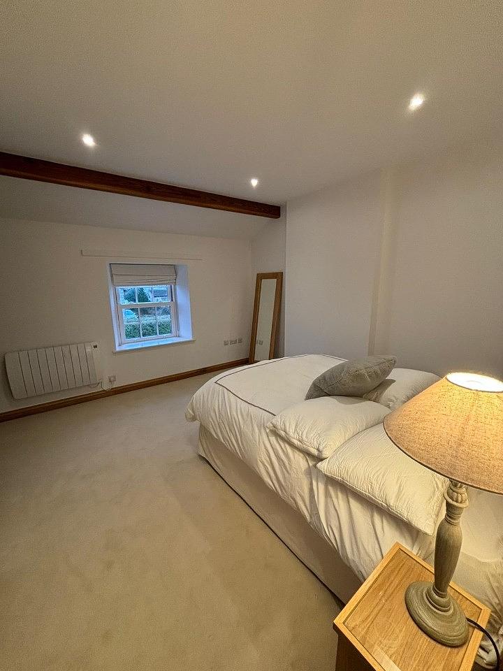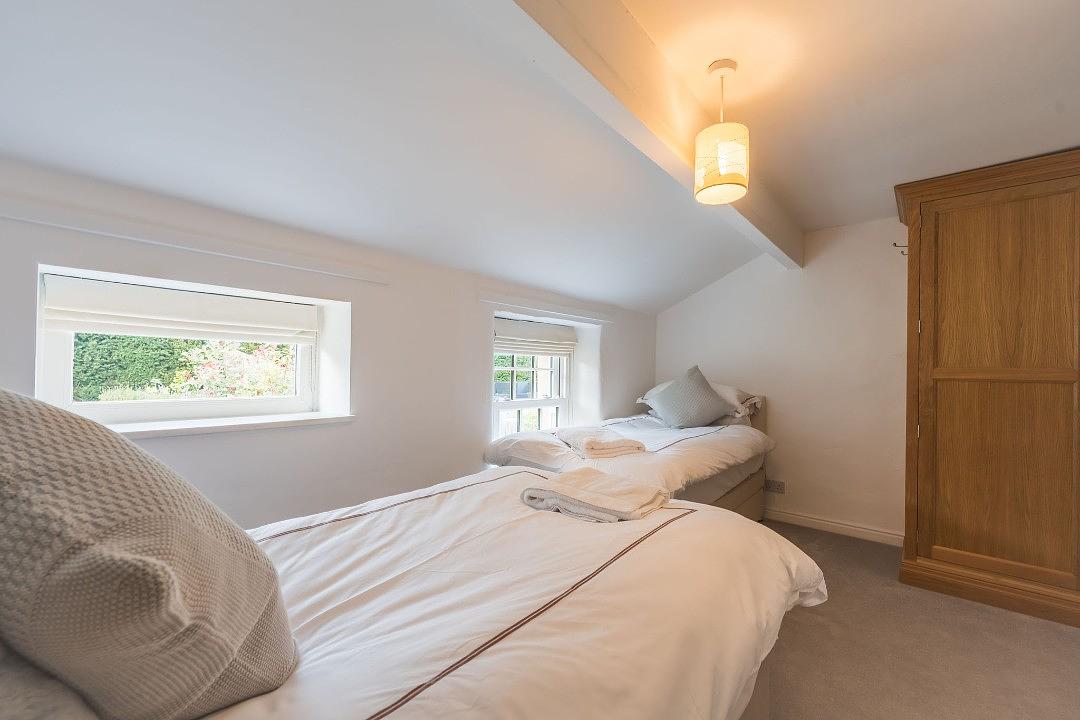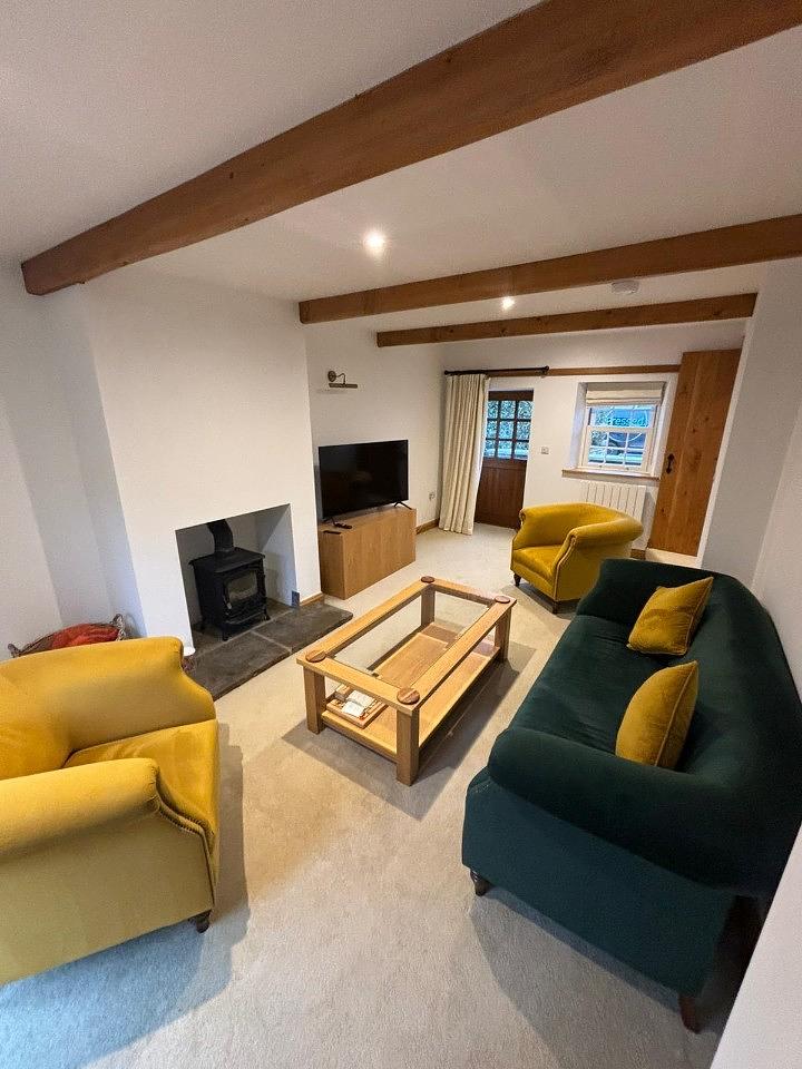 The cottage has three bedrooms: a master with a king-size bed, a second with a double, and a third with two singles, ideal for families or friends. The bathroom includes a power shower to freshen up after a day of exploring the Dales.