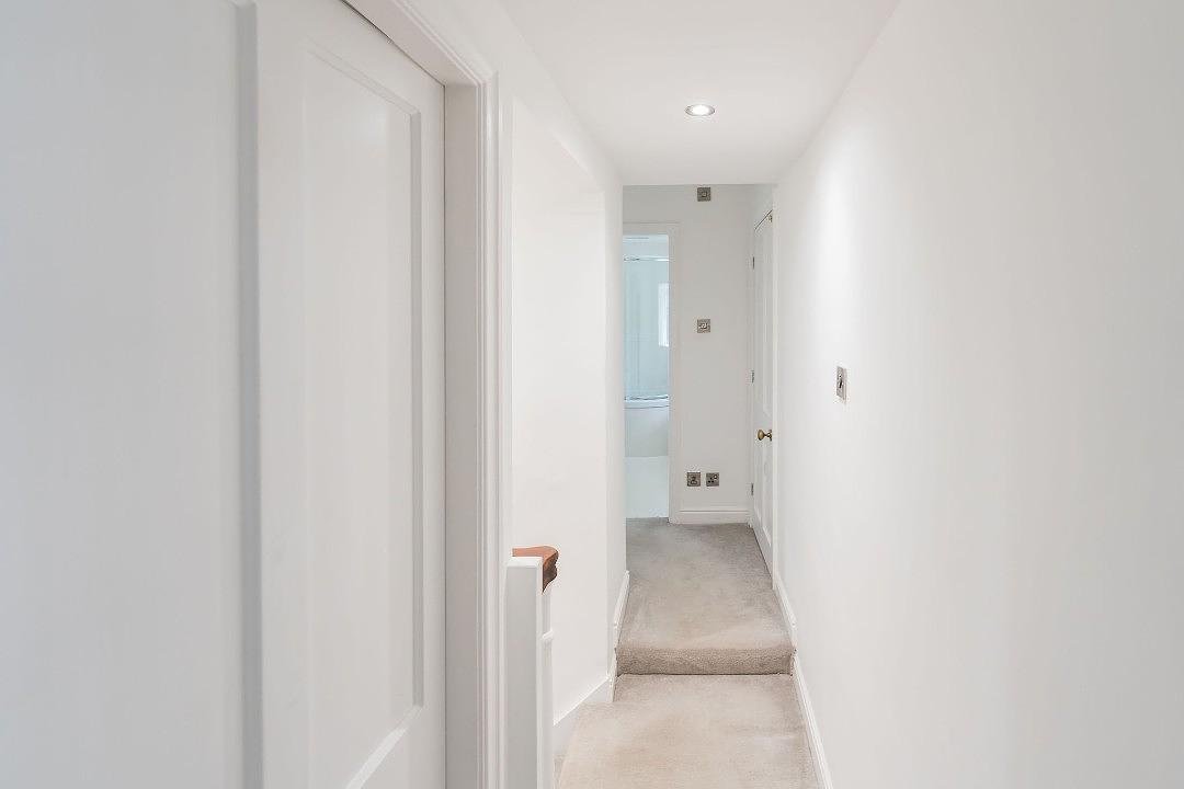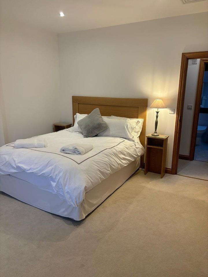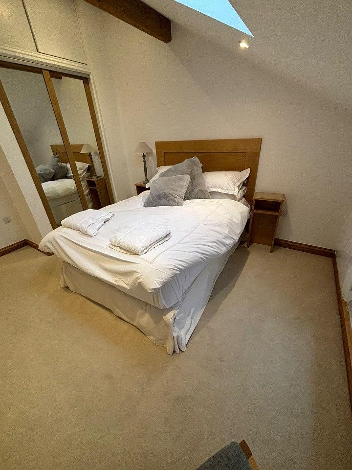 Upstairs, the master bedroom boasts a king-size bed and en-suite shower, while the second bedroom offers a double bed. The third bedroom has a single bed.