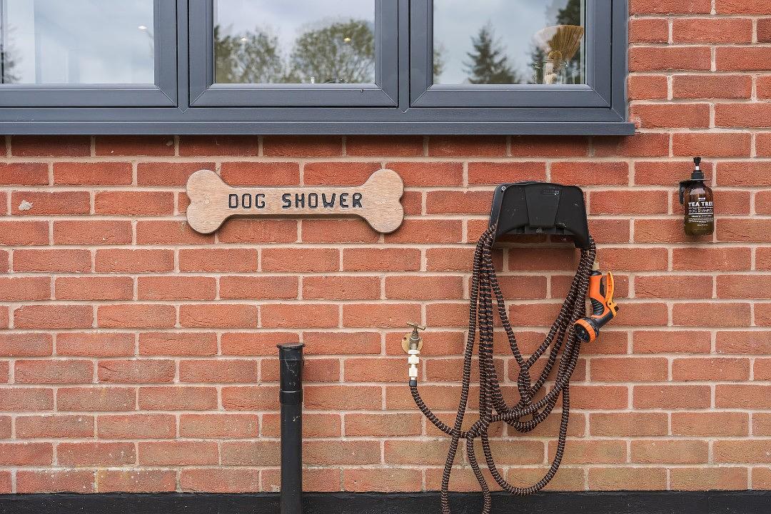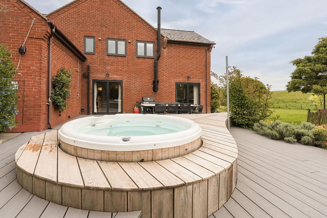 Canvas sails set the scene for the hot-tub deck with an outdoor cedar-wood dining area to make the most of the gas-fired barbecue. The purpose-built cedar benching is perfect for sunbathing, yoga or meditation, while the massage jets in the whirlpool hot tub ease any aches after a day’s walking in the hills. An outdoor heated shower adds to the luxury. With its view over the wildlife pond, orchard and wishing well, the deck really is the social hub of your holiday at Ty Cefn.