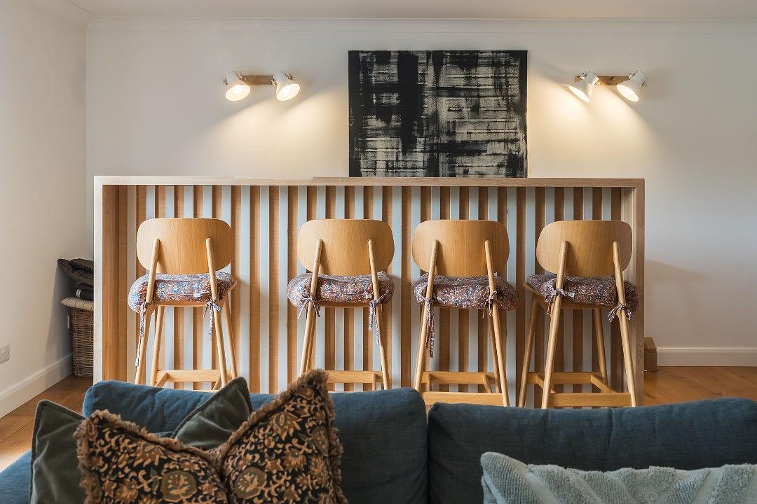 With a cosy wood burner for winter evenings, in Ty Cefn’s Living Room, comfort is key. Squashy L-Shaped sofas are perfect for watching the Smart TV, playing games and just hanging out with friends and family. In summer, double French windows open out onto the deck bringing in air and light for the ultimate in inside/outside living. Add a spectacular cocktail bar for celebrations and you have the perfect setting for relaxing, whatever the season.