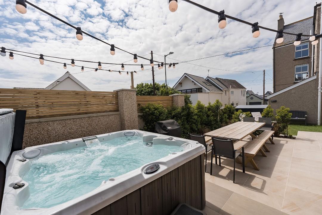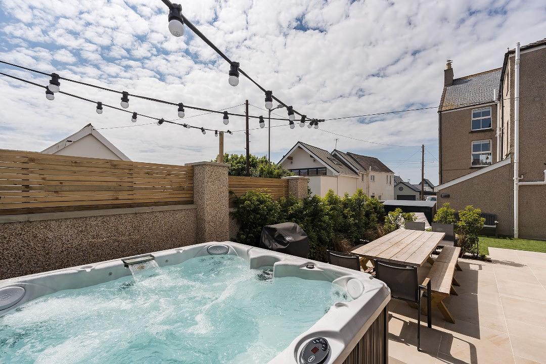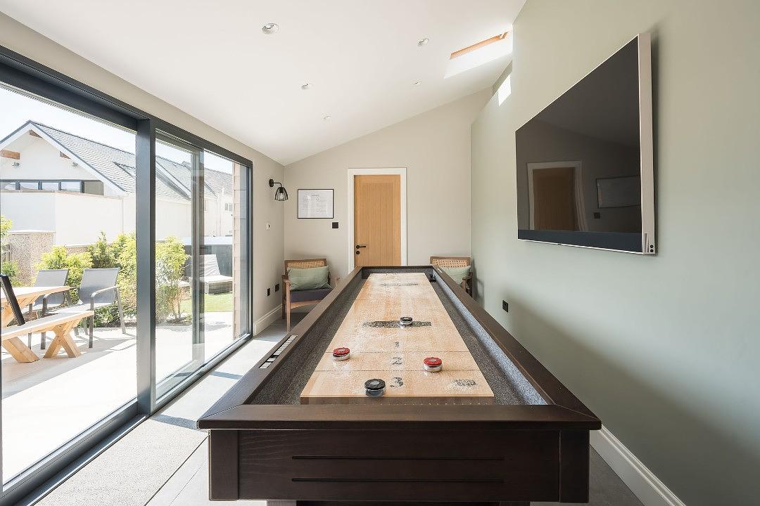 The newly renovated garden’s elegance mirrors that of the home. The garden games room includes a bar, 9ft shuffle board and is the perfect space to entertain friends and family. For those long summer evenings the decking and dining area for 16 people are the perfect backdrop and the elevated hot tub is a must. Savor your morning coffee on the private garden terrace amidst gentle ocean breezes.