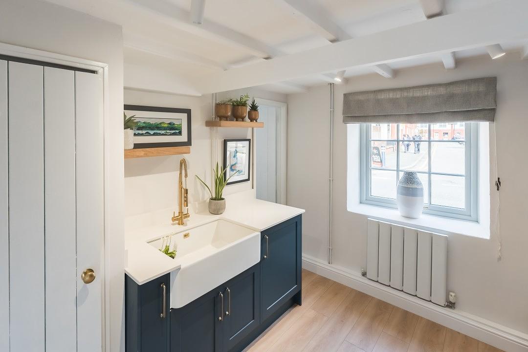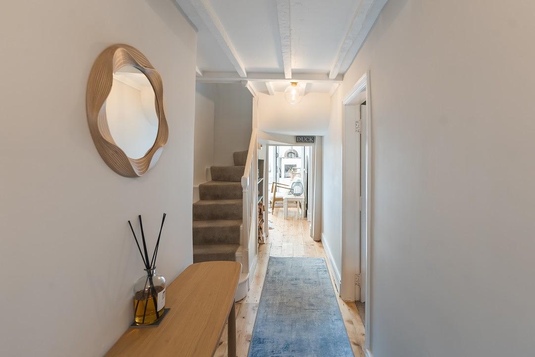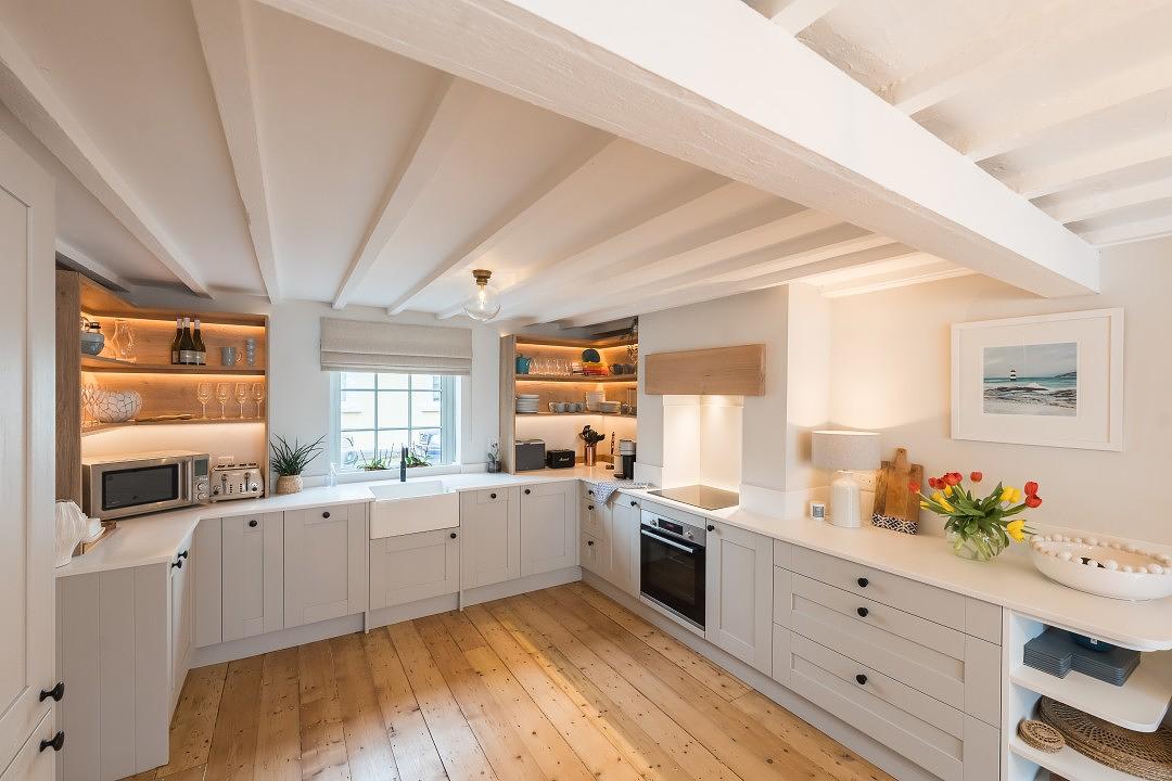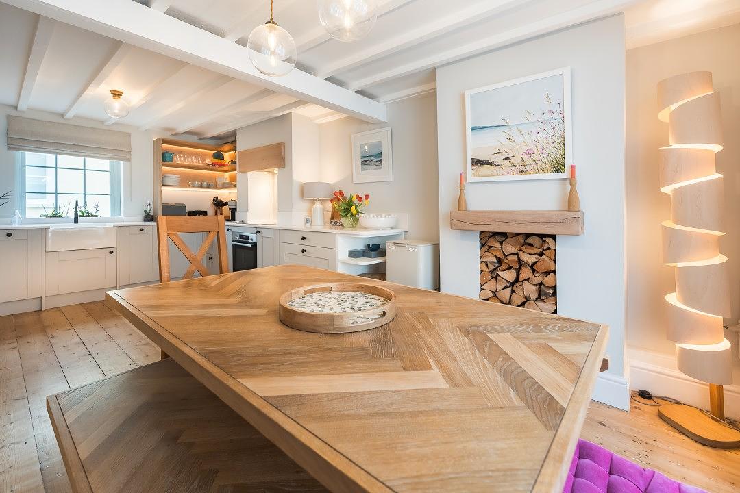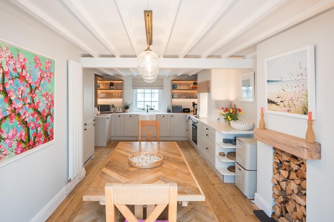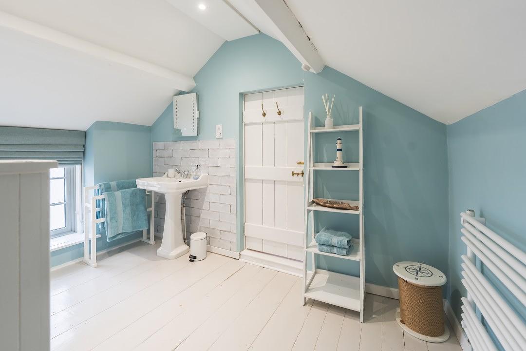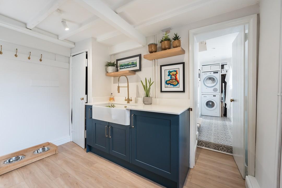 At the rear of the property is a modern, well-equipped utility room and boot room area. There is a stylish bathroom shower that can be accessed directly courtyard and internally. It is the perfect decamping space following a busy day at the beach.