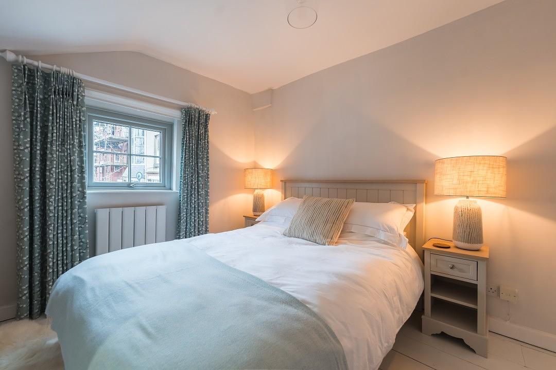 Climb the stairs up onto the first floor, where you will find four beautifully decorated, serene bedrooms. One to the rear of the property, that overlooks the private courtyard below, which is accessed via its own private stair case. With prior notice this super king bedroom can be can be converted into a twin room.
