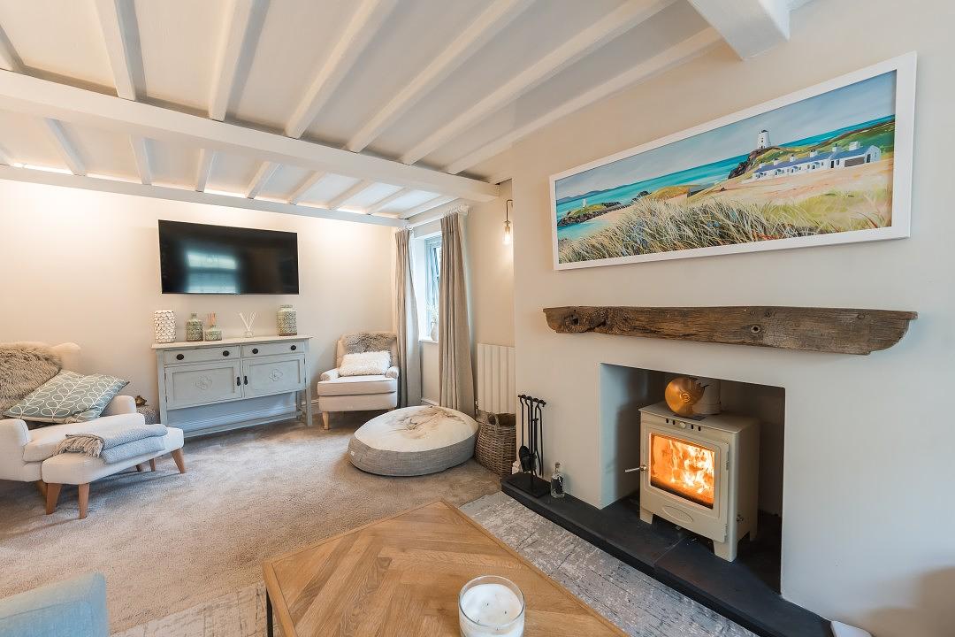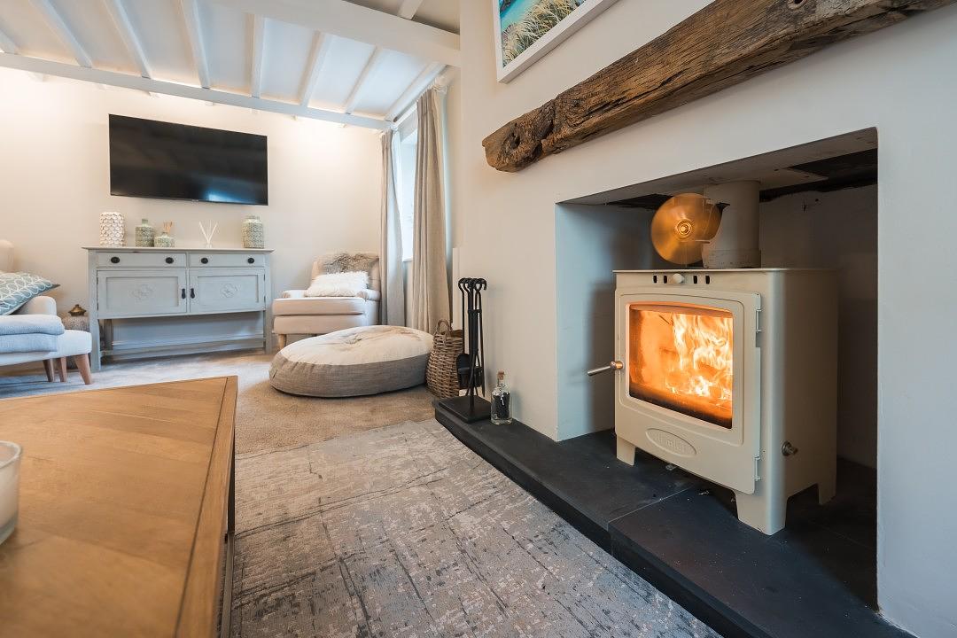 Lounge with log burner and smart TV